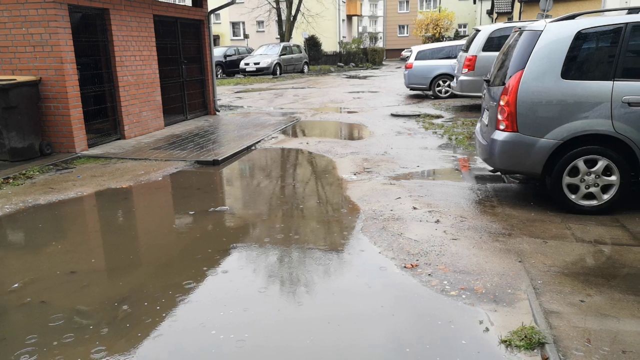 Podtopione podwórko i parking. Lokator pyta, czy można liczyć na zmianę?