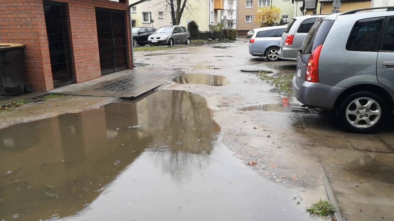 Wideo: Podtopione podwórko i parking. Lokator pyta, czy można liczyć na zmianę?