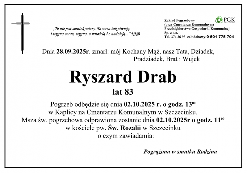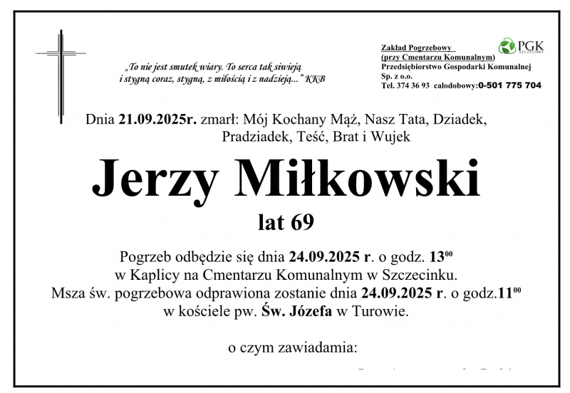 ZAKŁAD POGRZEBOWY PGK SP. Z. O.O. ŚWIADCZY USŁUGI W ZAKRESIE: