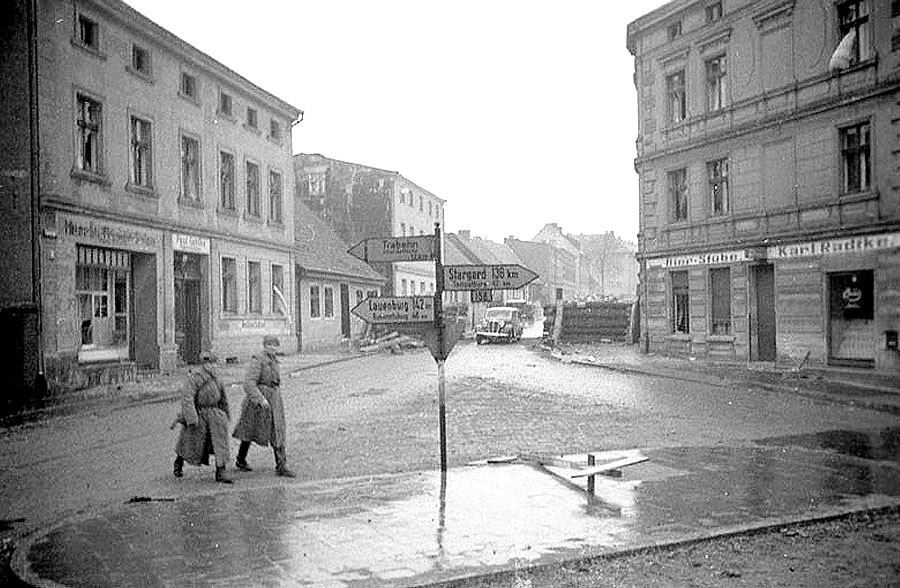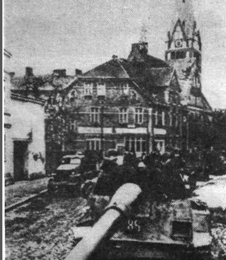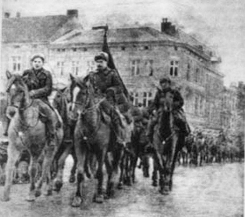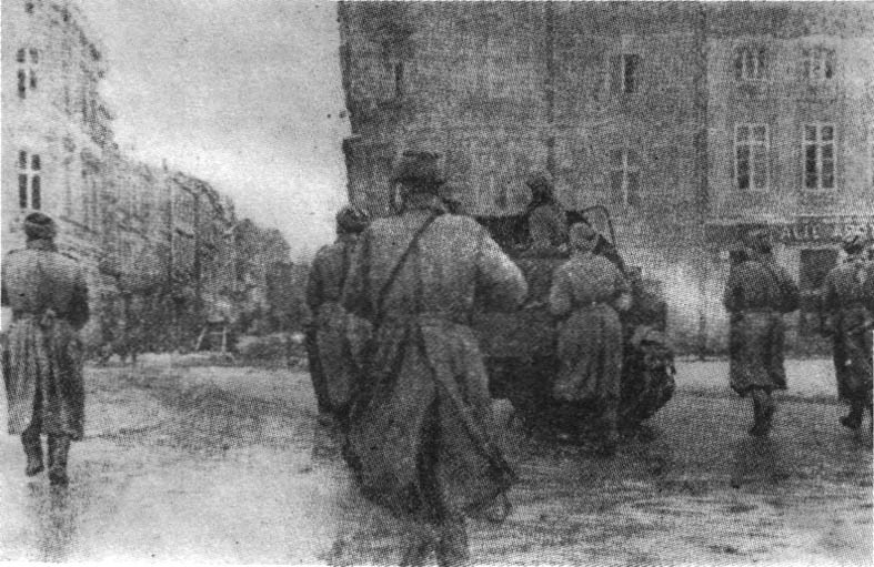 Oto nagle całą szerokością ulicy wali tłum żołnierzy. Brudni, oberwani, wielu z nich w gumowych butach, w ciemnozielonych płaszczach z pepeszkami w rękach, ale weseli i zwycięscy