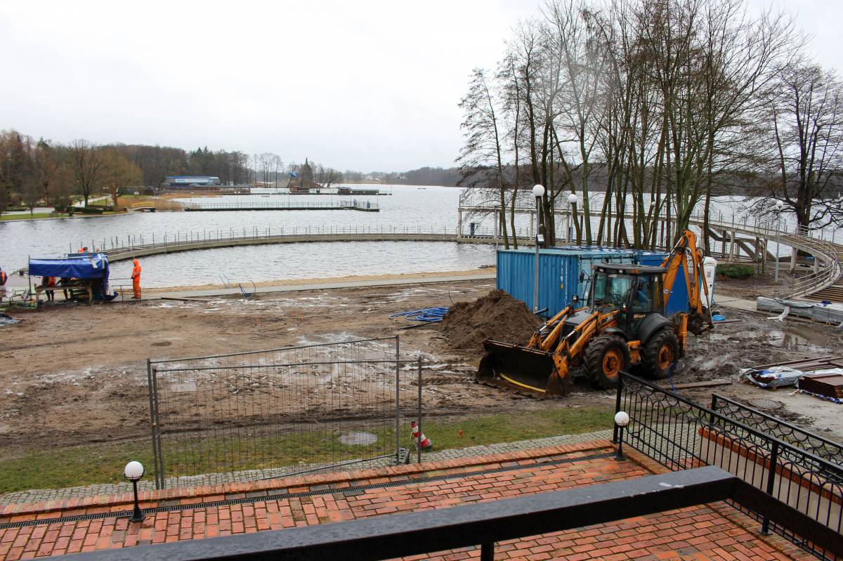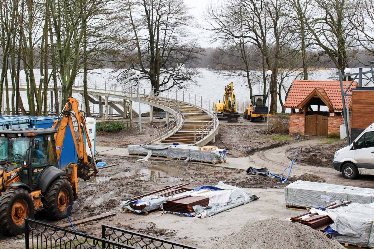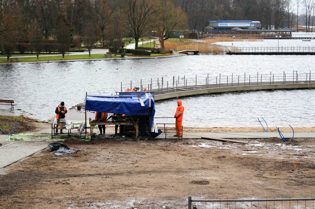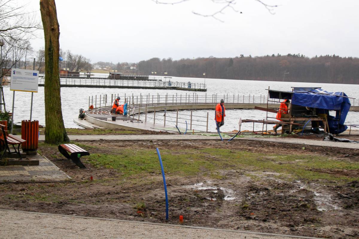 Wprawdzie termin ustalony został na koniec kwietnia, ale wykonawca - firma Hydrobud - zamierza prace zakończyć znacznie szybciej. Mowa o dwupoziomowym pomoście przy średniowiecznych murach szczecineckiego Zamku Książąt Pomorskich. Inwestycja rozpoczęła się kilka miesięcy temu od potężnych wstrząsów związanych z wbijaniem w jeziorne dno stalowych pali. Jeszcze przed zimą wykonawca ukończył wylewanie żelbetowej konstrukcji. Teraz przyszła pora na montaż deskowania.