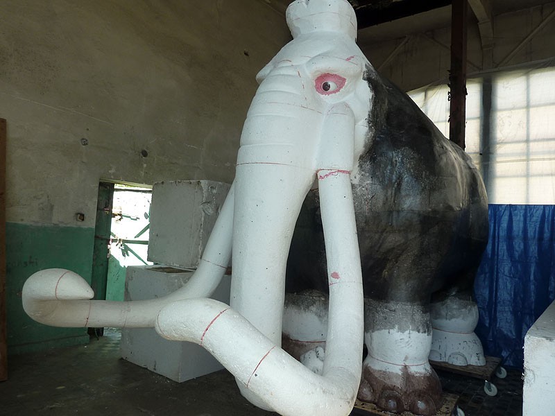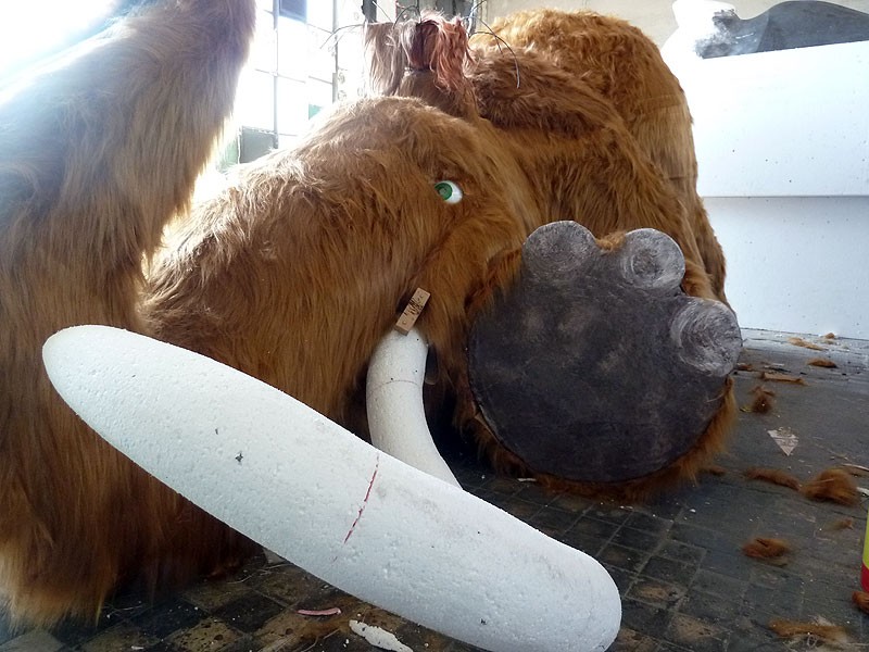 Gigantyczne rzeźby dwóch mamutów i ich nieco mniejszych kolegów to kolejne dzieło Beaty Bilskiej-Zaleskiej oraz Marka Zaleskiego (Pracownia Artystyczna Mazagro-Art), twórców ogromnego King Konga, który w kwietniu ub. r. stanął na stacji Canpol pod Człucho