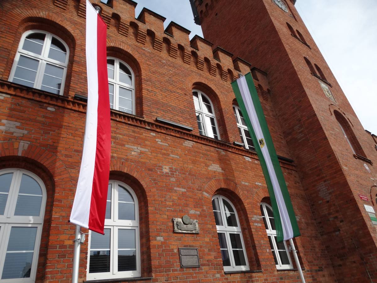 Flagi wiszą, bo... mogą. Przed ratuszem załopotały flagi Polski, UE i Szczecinka (Akt.)