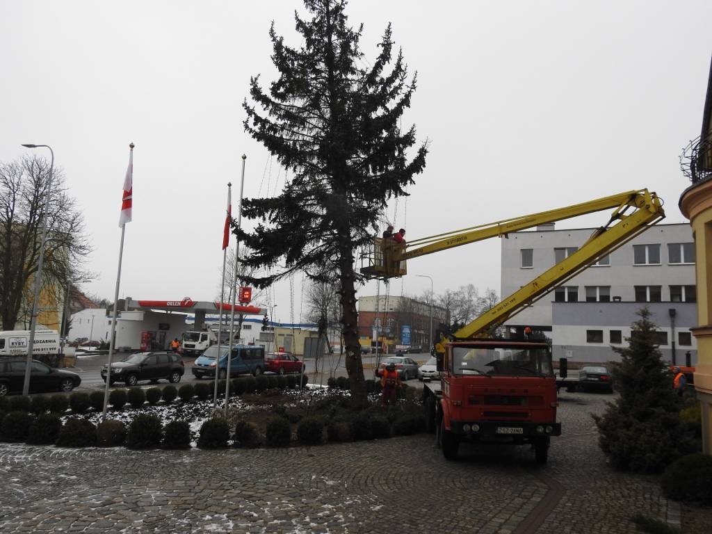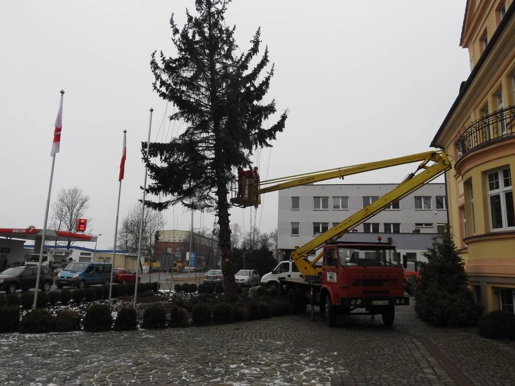 Zdjęcia Koło starostwa powiatowego już nie ma świerku - fotorelacja