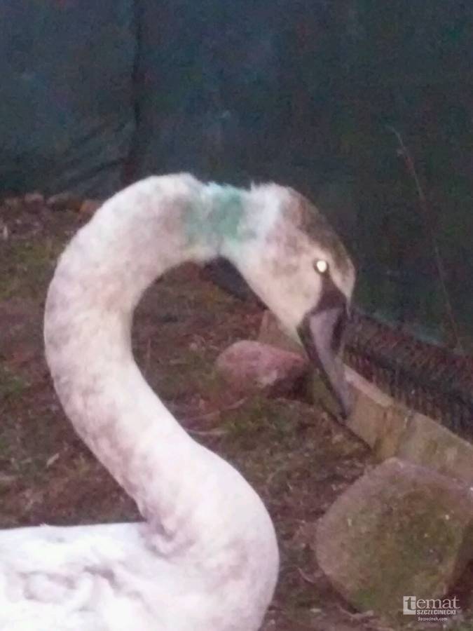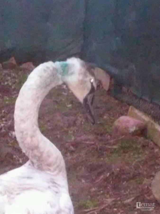 Łabędź, który miał rozszarpaną szyję, nadal przebywa w Kobylnicy. Pomóc może każdy