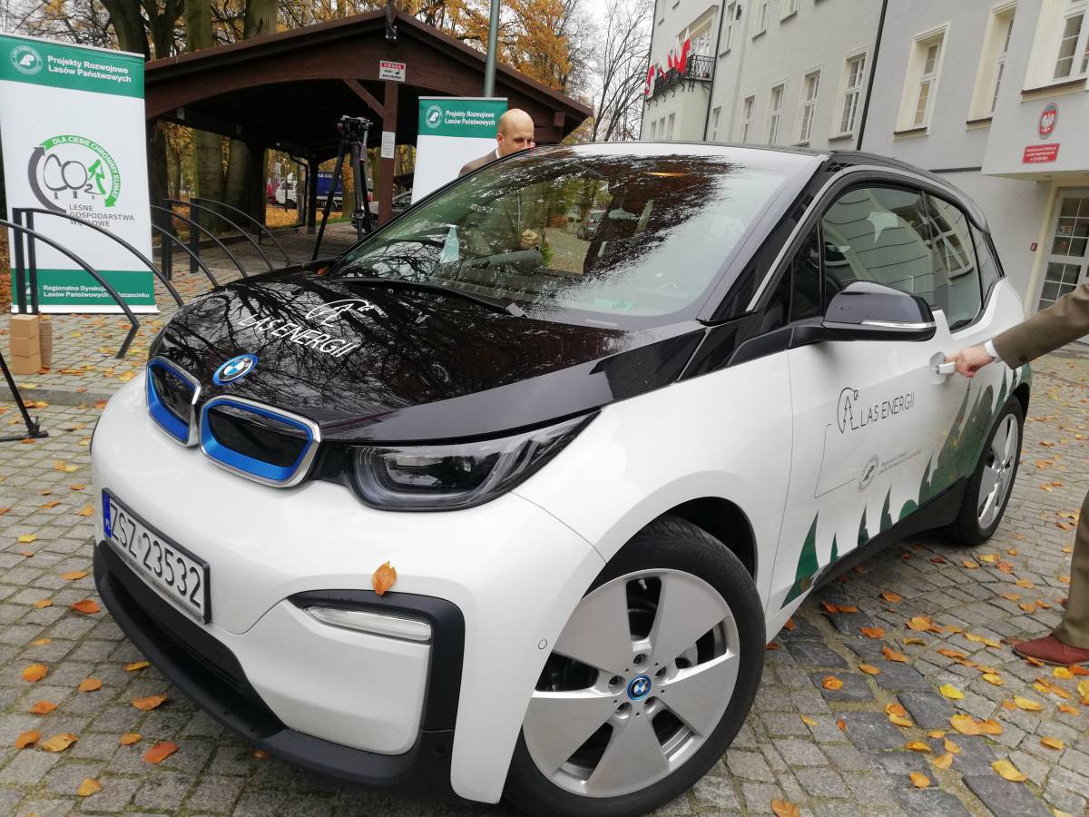 Regionalna Dyrekcja Lasów Państwowych w Szczecinku w ramach projektu rozwojowego "Las Energii" jako pierwsza w Polsce otrzymała elektryczny samochód - BMW i3. W piątek (9.11) odbyła się konferencja prasowa, na której Marek Stasiuk i specjalista do spraw wdrażania projektów rozwojowych Lasów Państwowych Błażej Chmielewski, zaprezentowali warty ok. 160 tysięcy złotych pojazd i przekazali o nim najważniejsze informacje. Nowe elektryczne BMW i3 emituje zero hałasu, posiada magazyn energii, system TMS (ogrzewania i chłodzenia baterii, której pojemność to 33,8 kWh). Realny zasięg oscyluje na poziomie 14,7 kWh na 100 km. Mamy możliwość jazdy w trzech trybach: Normal, Eco i Eco+.