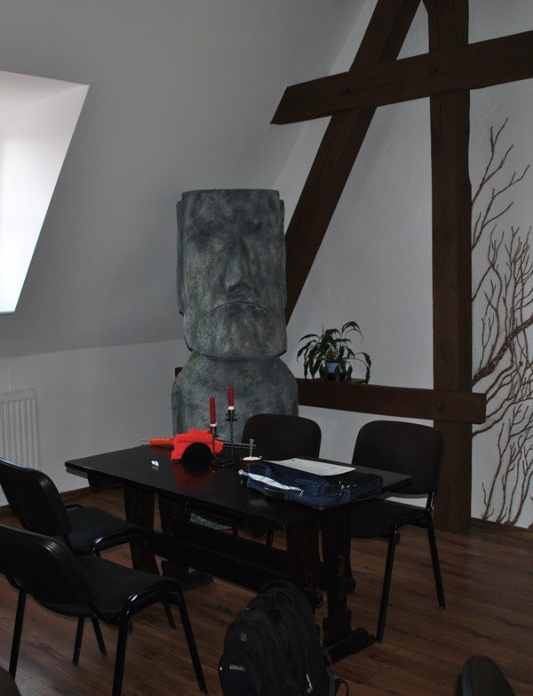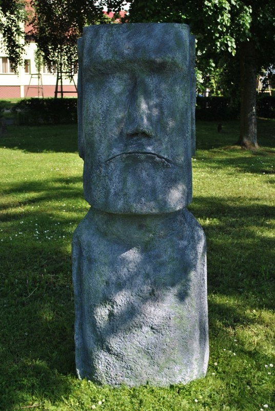 Rzeźba mierzy 2 metry wysokości i ok. 80 cm szerokości. Cała wykonana została ze styropianu i pomalowana farbami akrylowymi w taki sposób, aby imitowała kamień