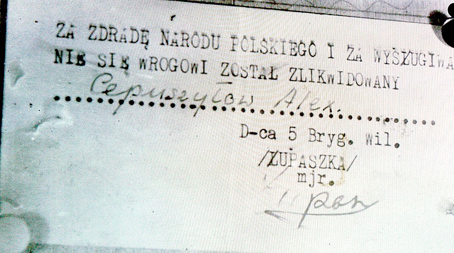 Wyrok podpisany przez mjr „Łupaszkę”.