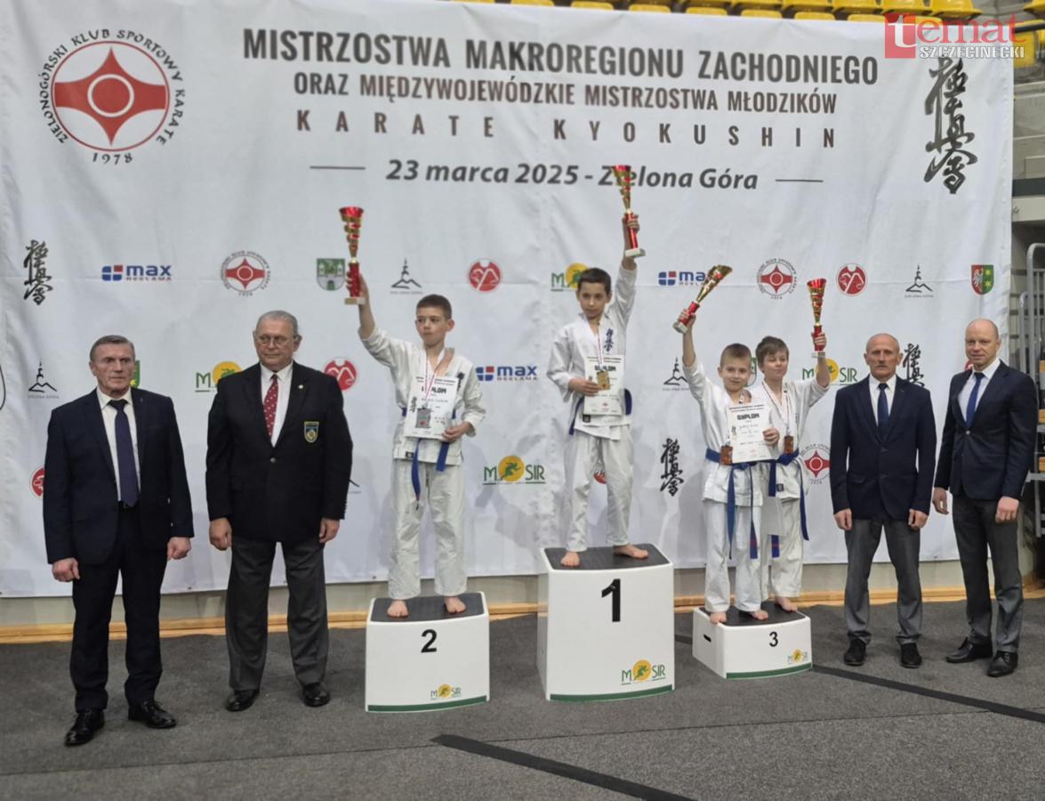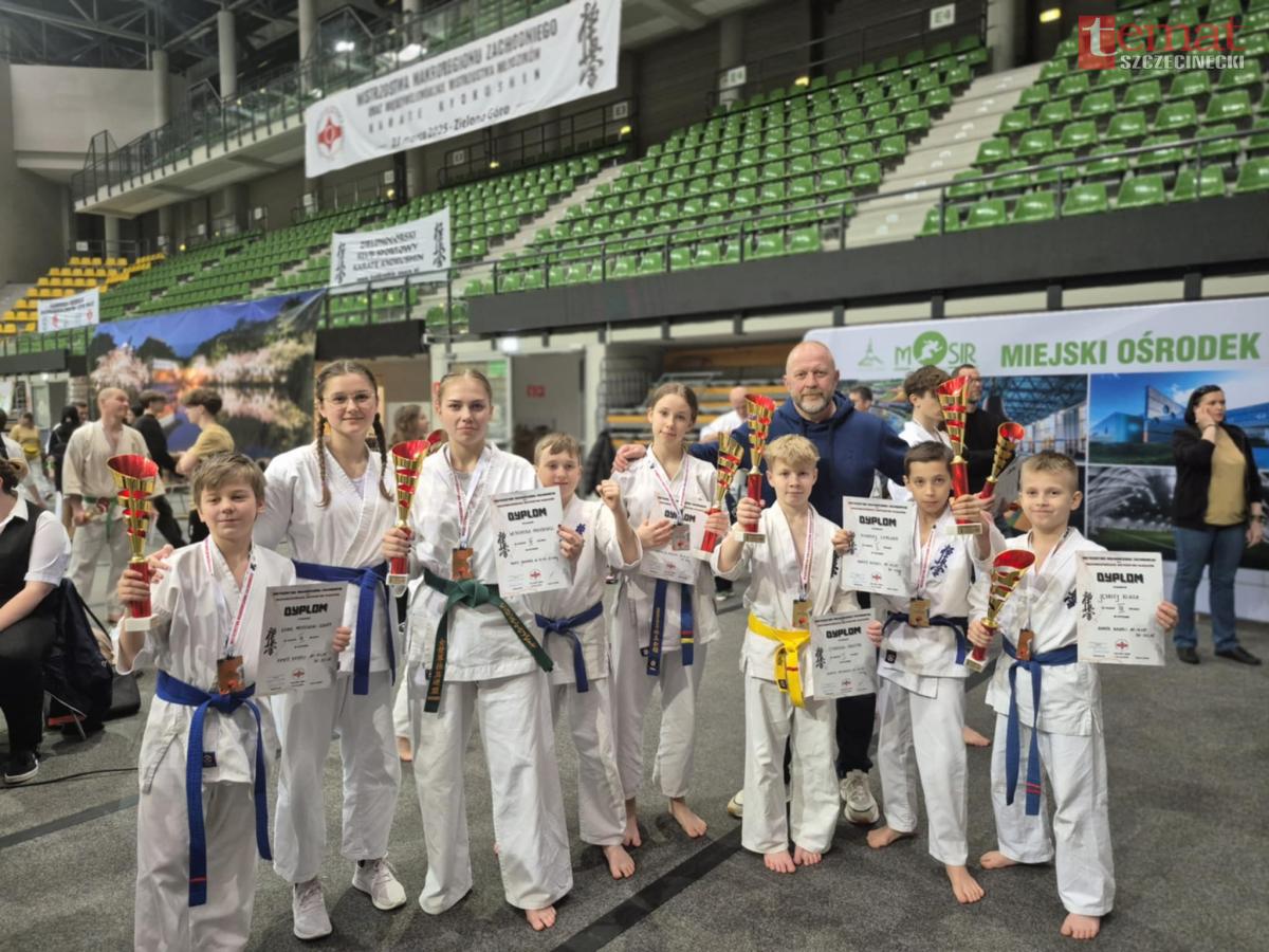 W miniony weekend Szczecinecki Klub Karate Kyokushin brał udział w Mistrzostwach Makroregionu Zachodniego. Zawody w Zielonej Górze zgromadziły 170 zawodników z 21 klubów. Ośmioro reprezentantów ze Szczecinka wywalczyło 6 medali, w tym złoto dla Mikołaja Lemczaka i Stanisława Fabisiaka. Sensei Wojciech Hurka, jako trener, odpowiadał za drużynę. Pomimo walki Antoni Kluza i Maria Rybak nie stanęli na podium. Gratulacje za determinację i ducha walki na macie!