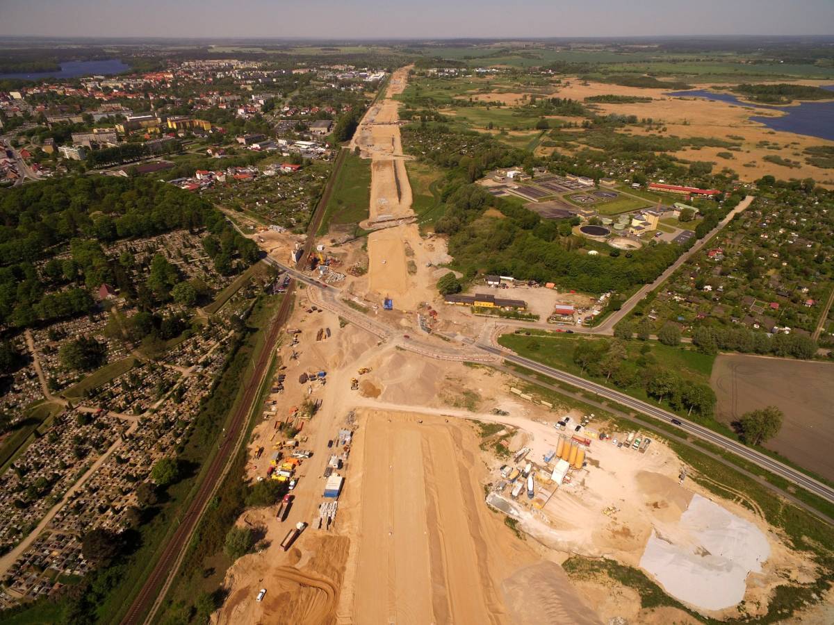 O postępie robót przy budowie szczecineckiej obwodnicy w ciągu krajowej „jedenastki” piszemy w naszych miesięcznych raportach. Jak wynika z zestawienia zamieszczonego na stronie internetowej GDDKiA zzaawansowanie finansowe z końcem kwietnia 2018 r. wynosiło 94,7 mln zł co stanowi 35,42% kwoty kontraktowej. Przypomnijmy, że wartość całej inwestycji wyceniono na 322 mln zł, a jej realizacja potrwać ma do kwietnia przyszłego roku. Przez ostatni miesiąc niewiele się zmieniło. Sprzyjająca pogoda spowodowała, że z ziemi wyłoniły się już wszystkie konstrukcje inżynieryjne.