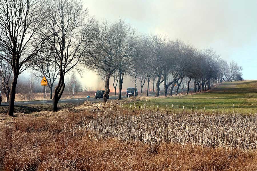 Dzisiaj (22 03) ok. godz. 14 doszło do pożaru podmokłych łąk i zakrzaczeń pomiędzy torami kolejowymi a szosą koszalińską na wysokości dawnej strzelnicy wojskowej i ogrodów działkowych „Wrzos”
