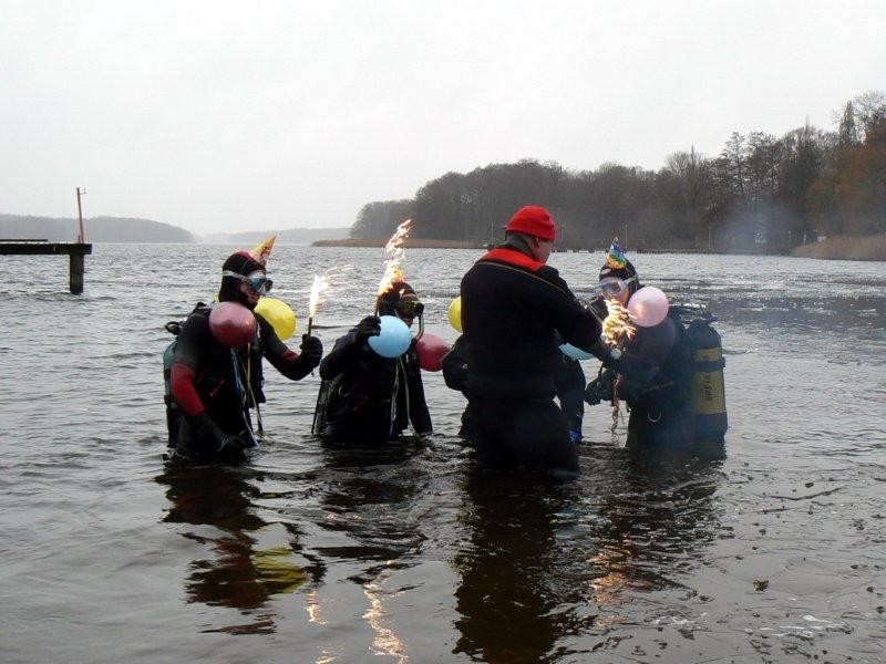 Dziś (poniedziałek 31.12) w samo południe członkowie Klubu Płetwonurków „Murena” w Szczecinku już po raz dwudziesty przywitali Nowy Rok w wodach jeziora Trzesiecko. Tradycyjnie też pozdrowili mieszkańców Szczecinka