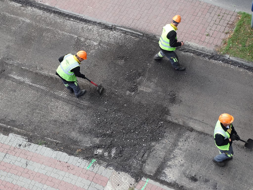 ekipa remontowa zajęła się naprawą sfatygowanej jezdni.