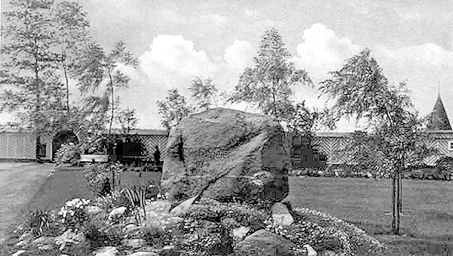 Kamień przy plaży miejskiej upamiętniał hitlerowskiego bojówkarza, niejakiego Schlageter`a. Zdjęcie z okresu międzywojennego.