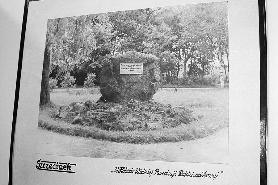 Po wojnie napis został skuty, a w jego miejscu przymocowano kamienną tablicę z napisem „Bojownikom o wolność i socjalizm poległym w Wielkiej Rewolucji Październikowej w hołdzie...”