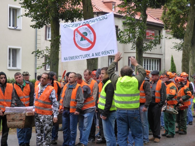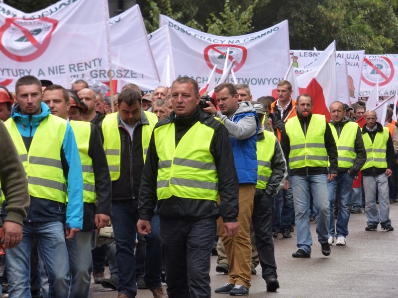 Ponieśli drwala w... trumnie. Pracownicy leśni protestują przeciw szarej strefie w samej RDLP