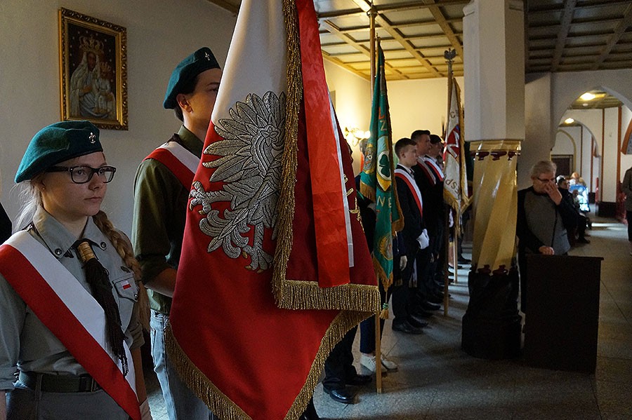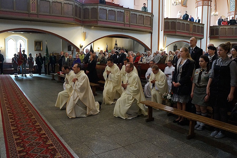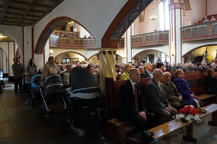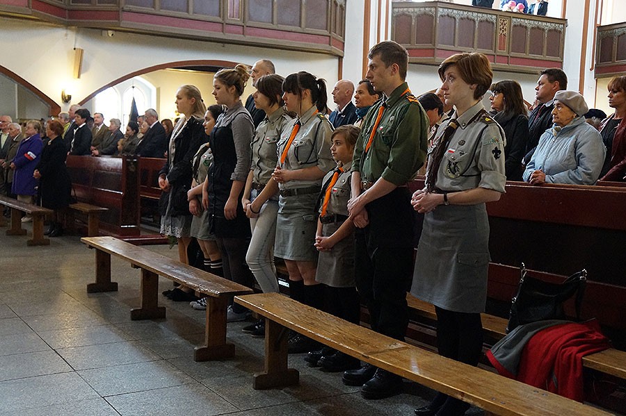 Przemówienia i kwiaty Pamięci represjonowanych Juliana Chodoruka, Bronisława Kopacza, Antoniego Lewańskiego, członków PSL za zorganizowanie 3 maja 1946 roku wielkiej patriotycznej manifestacji mieszkańców Szczecinka i okolic przeciwko komunistycznemu ter