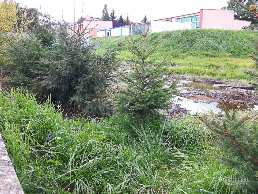 Śmierdząca breja leci do pięknego stawku