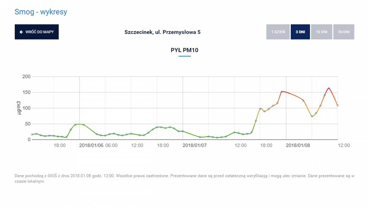 Smog w Szczecinku. Odnotowano spore przekroczenia stężenia pyłu PM10