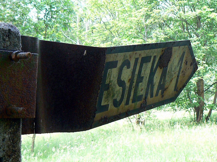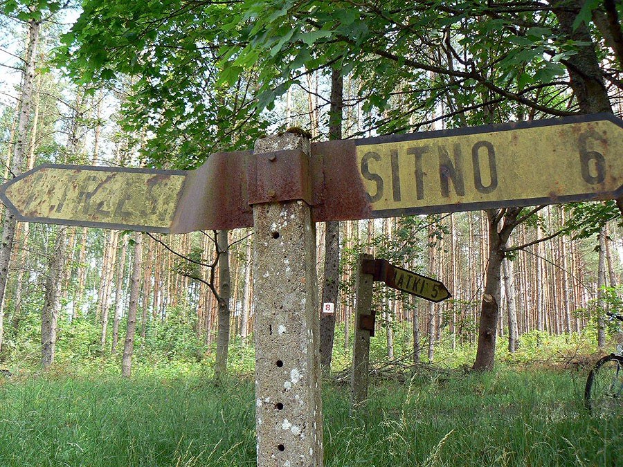 Pochodzące zapewne z przełomu lat 60. i 70. ubiegłego stulecia, a może jeszcze starsze, znaki wskazujące podróżnym drogę do Trzesieki, Świątek, Janowa czy Sitna stały przy rozwidleniu ulicy Żeglarskiej