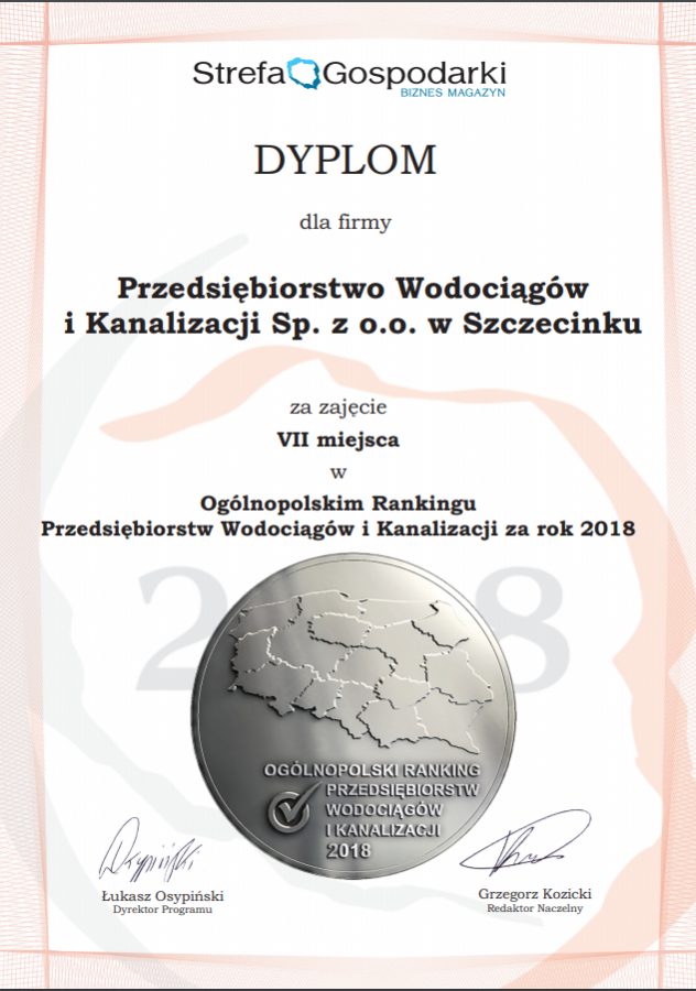 Szczecineckie wodociągi na siódmym miejscu w Ogólnopolskim Rankingu Przedsiębiorstw
