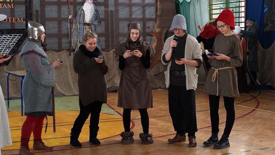 Na tle imponującej dekoracji, która nawiązywała do średniowiecznych inspiracji prozy autora „Władcy Pierścieni”, występowali uczniowie w strojach z epoki