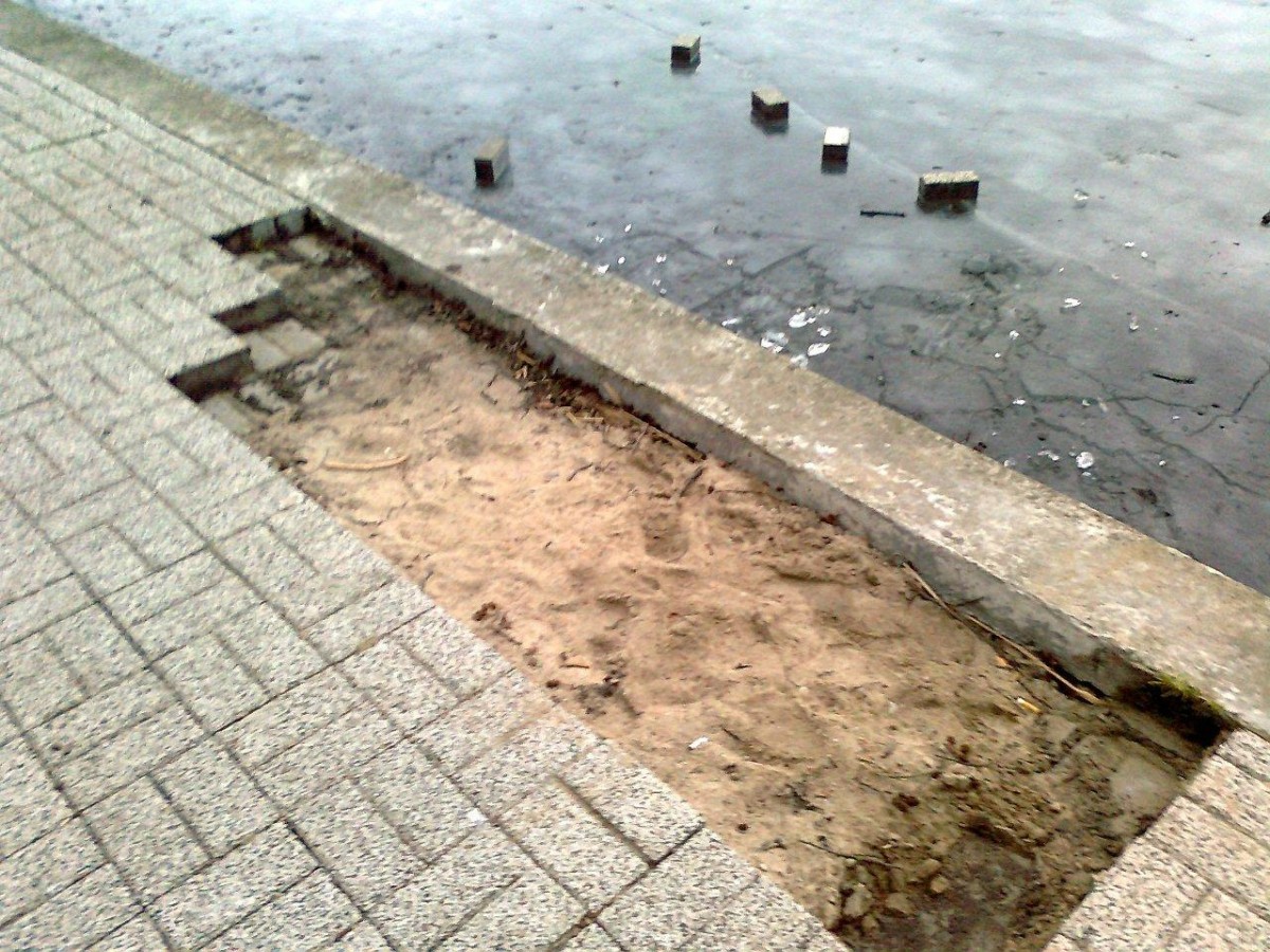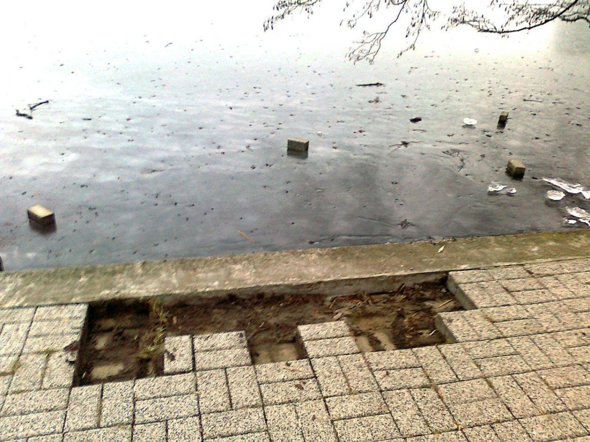 Do wczoraj w ułożonym tuż przy brzegu jeziora polbruku była tylko jedna dziura