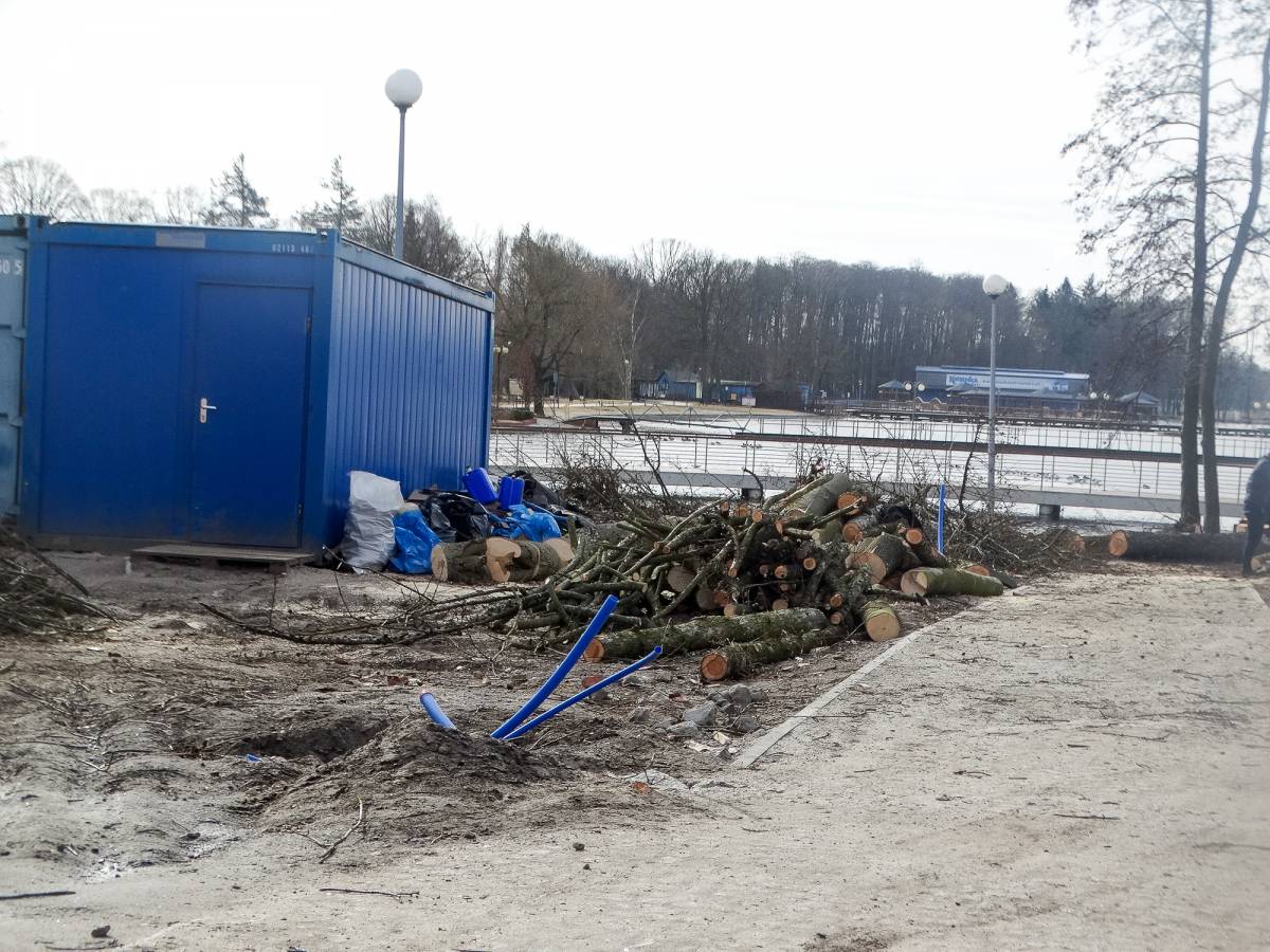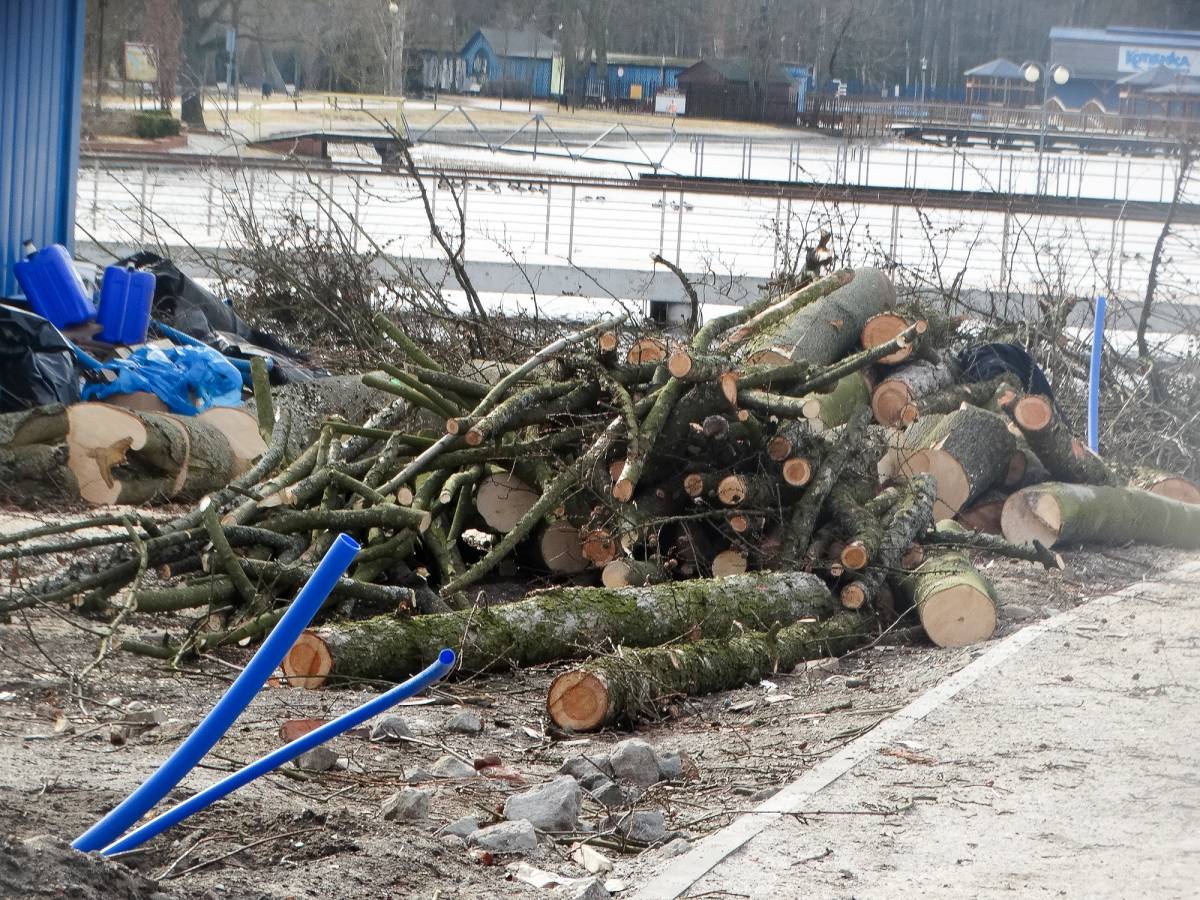 Na terenie znajdującym się tuż przy Zamku Książąt Pomorskich w Szczecinku padają drzewa – taki sygnał otrzymaliśmy dzisiaj (16.03) od jednego z naszych Czytelników. Rzeczywiście, od strony nowo wybudowanego pomostu pilarze mają ręce pełne pracy. Ostatnio wycinka właśnie w tym miejscu była przeprowadzona w 2013 roku, kiedy kończono modernizację południowego skrzydła zamku. Wówczas cięcie drzew miało służyć temu, by odsłonić widok na wyremontowany zamek. Czy teraz także rosnące tu od wielu lat drzewa nie pasują do widoku na nowiutki pomost?