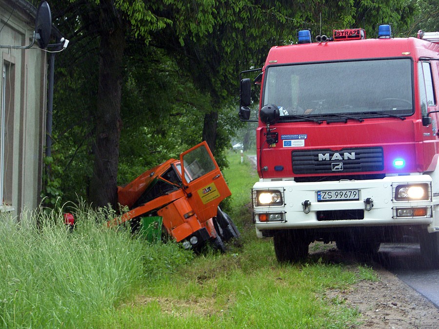 Wypadek koło Radacza – star uderzył w drzewo, pasażer w szpitalu