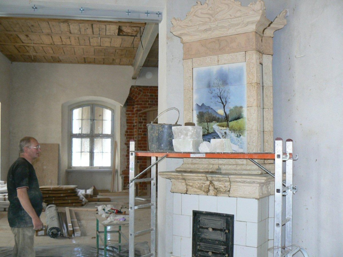 Zabytkowy, secesyjny piec pochodzący z początków XX stulecia na dobre stanął już w komnacie Zamku Książąt Pomorskich