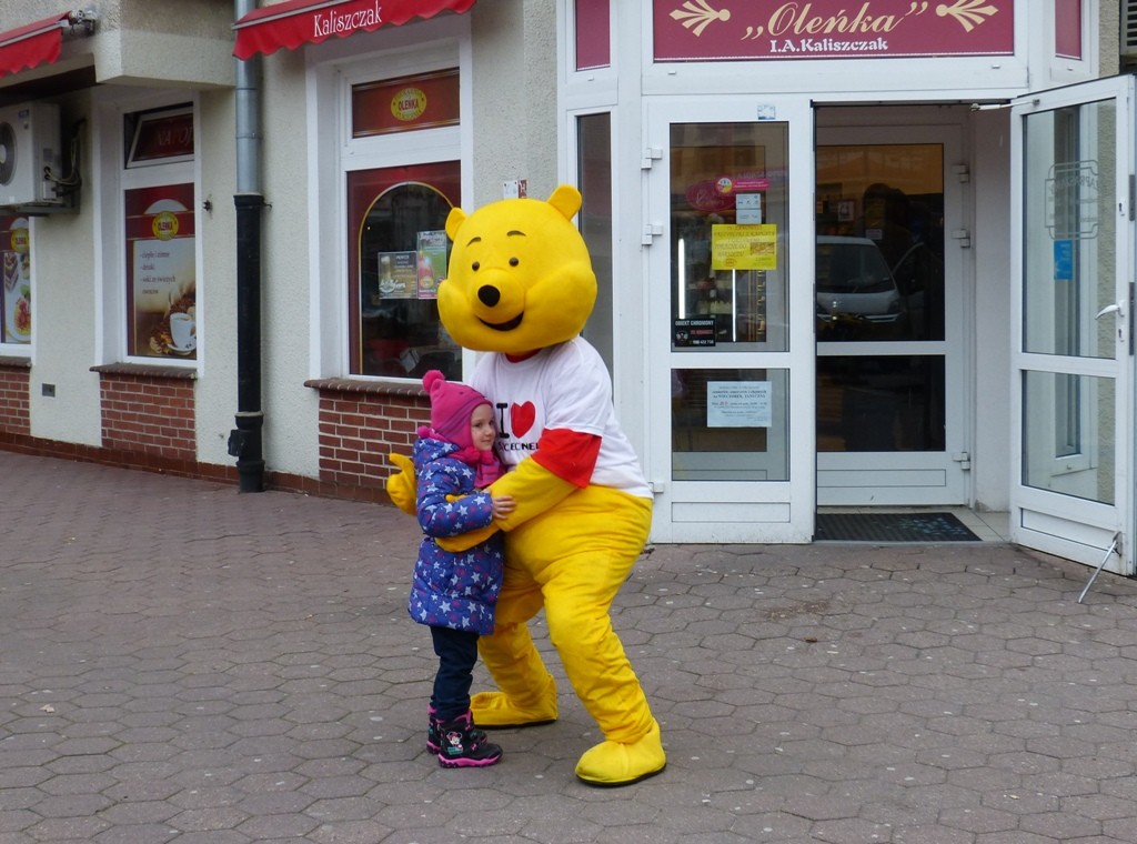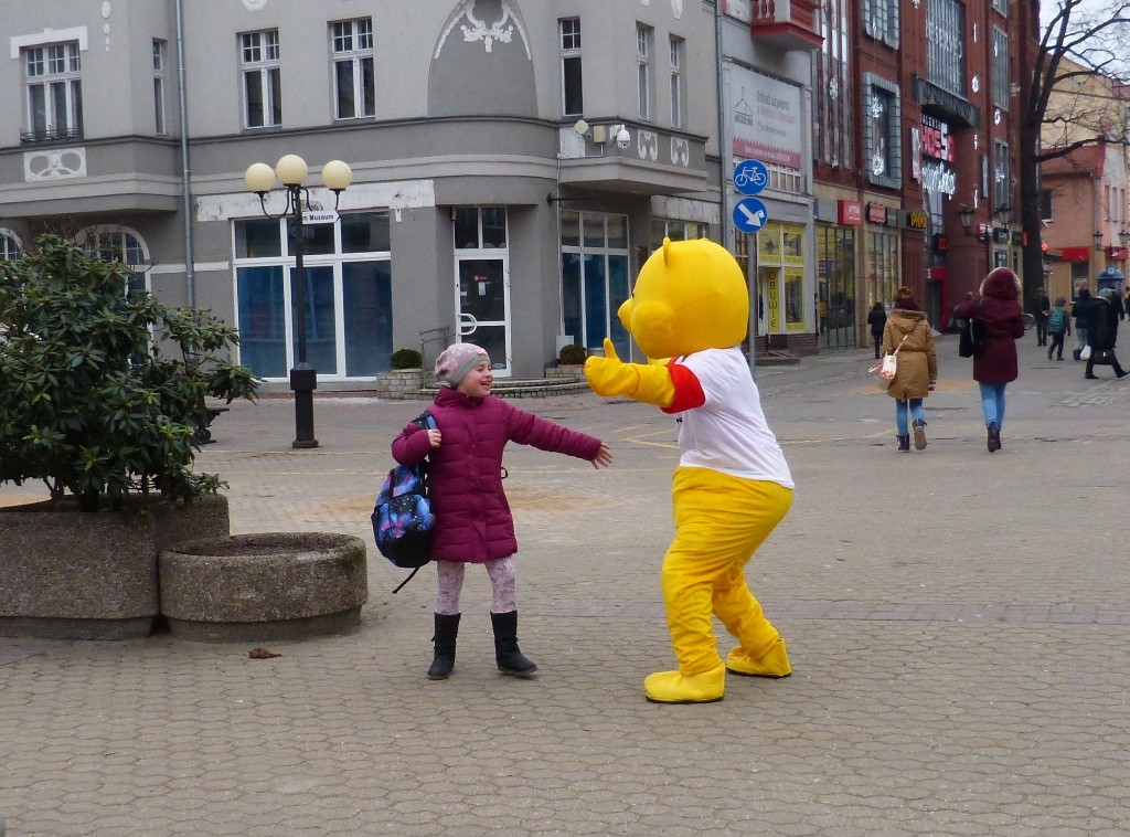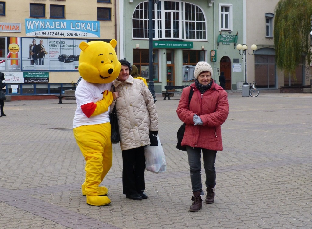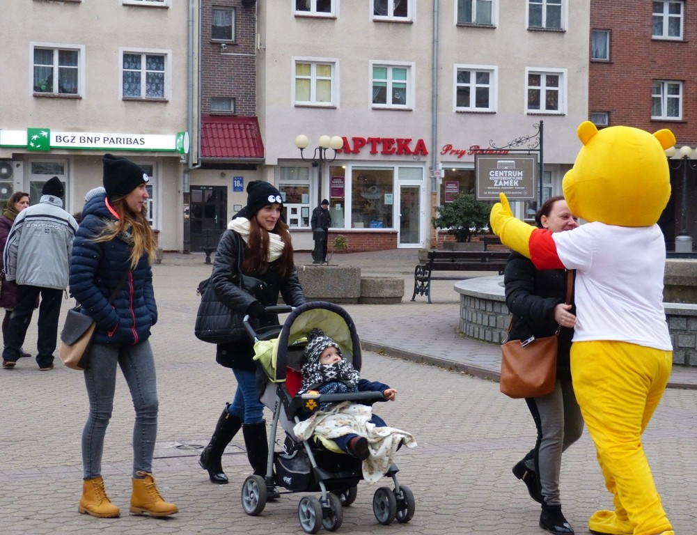 Żółty miś przytulał ludzi w centrum Szczecinka