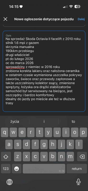 SPRZEDAM SKODA OCTAVIA 1.6 MPI +GAZ 2010 (wygasło)